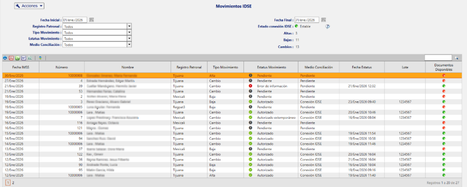 - Validación de Datos: Antes del envío, el sistema detecta inconsistencias (como RFC o NSS mal estructurados) para evitar rechazos del IMSS.