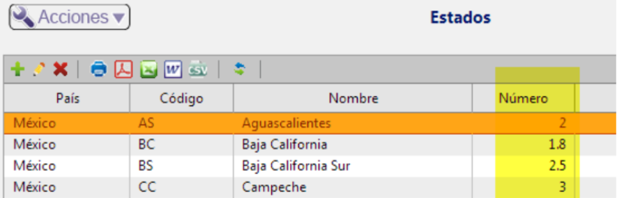 1. Una vez que tengas el porcentaje para cada estado, asigna el porcentaje en cada estado desde los catálogos en el campo Número.