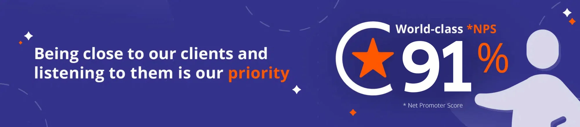 The Net Promoter Score (NPS) is based on the type of experience our customers have had with our services and, with a simple question, allows us to determine the percentage of customers who would recommend us.
